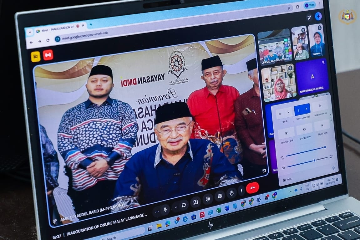 TYT Tun Seri Setia Dr. Haji Mohd Ali bin Mohd Rustam, Yang di-Pertua Negeri Melaka menyempurnakan Perasmian Kelas Pengajian Bahasa Melayu Lingua Franca secara online anjuran Dunia Melayu Dunia Islam (DMDI).